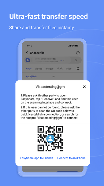 EasyShare, iPhone kullanıcıları için tasarlanmış etkili bir dosya paylaşım uygulamasıdır. Uygulama, videolar, müzik, fotoğraflar, oyunlar ve daha fazlası gibi çeşitli dosya türlerini yüksek hızda transfer etme imkanı sunar. Kullanıcılar, paylaşmak istedikleri dosyaları seçtikten sonra, her şeyi güvenli bir şekilde ve Bluetooth'tan 200 kat daha hızlı bir şekilde paylaşabilirler. EasyShare, 1 GB'lık büyük dosyaları 30 saniyeden kısa bir sürede gönderebilir, bu da onu oldukça pratik bir seçenek haline getirir.